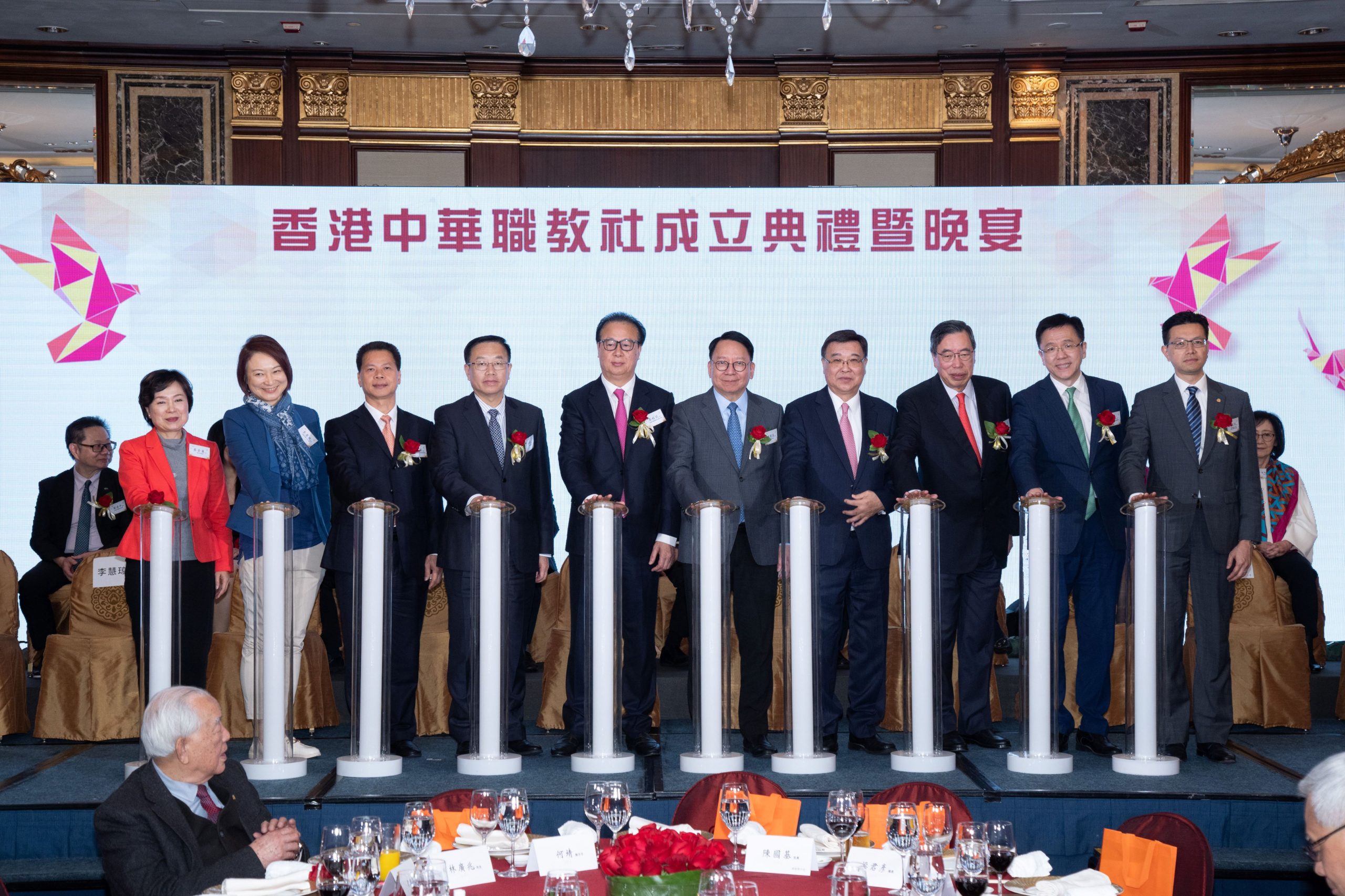 1月12日,香港中華職教社成立,來自政、商、教育、科技等各界人士齊聚一堂,同申慶賀,出席嘉賓包括政務司司長陳國基先生、中聯辦副主任何靖先生、廣東省委統戰部常務副部長郭漢毅先生、立法會主席梁君彥先生、全國人大常委李慧瓊女士、教育局局長蔡若蓮博士、創新科技及工業局局長孫東教授、中聯辦教育科技部部長王偉明教授、中聯辦青年工作部部長張志華先生、中聯辦教育科技部副部長吳程女士、廣東省教育廳副廳長馮偉先生、港區全國人大代表吳秋北先生等。作為一間專為聚焦職業教育的香港民間組織,香港中華職教社主席黃玉山教授表示,「資源」、「科技」及「人才」是職業教育的三大關鍵詞,而政界、商界和教育界是影響這三大關鍵的核心所在。香港中華職教社將緻力於成為這三大界別間的溝通紐帶,並將在內地與香港之間搭建橋樑,助力溝通及發展。