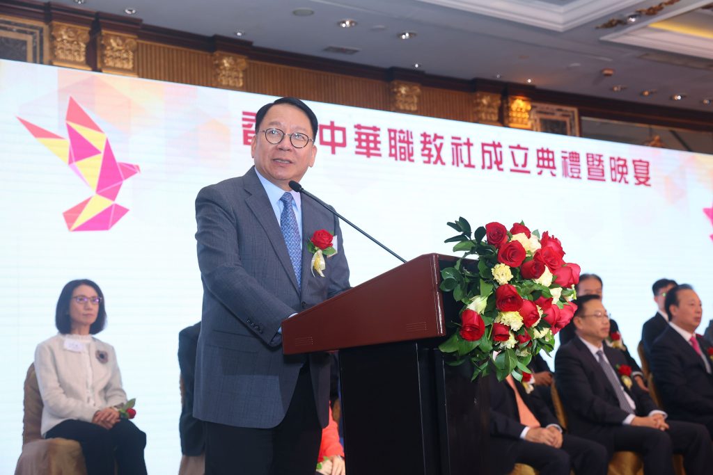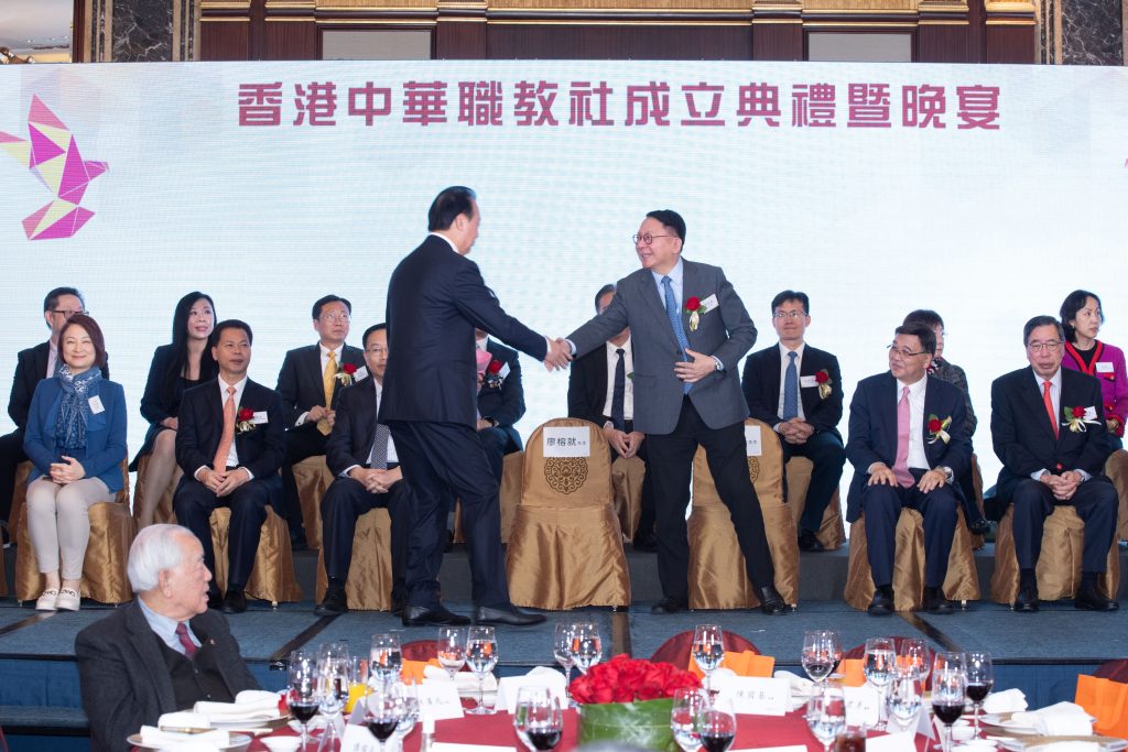 聚焦職業教育的香港民間組織,「香港中華職教社」成立典禮暨晚宴於2024年1月12日在港島香格裏拉大酒店隆重舉行。香港中華職教社理事會榮譽主席廖榕就博士、香港中華職教社理事會主席黃玉山教授、理事會副主席黃友嘉博士、廖伊曼博士及眾理事們均出席,香港特別行政區政務司司長陳國基先生擔任主禮嘉賓並緻辭。晚宴現場冠蓋雲集,貴賓包括中聯辦副主任何靖先生、廣東省委統戰部常務副部長郭漢毅先生、立法會主席梁君彥先生、全國人大常委李慧瓊女士、教育局局長蔡若蓮博士、創新科技及工業局局長孫東教授、中聯辦教育科技部部長王偉明教授、中聯辦青年工作部部長張志華先生、中聯辦教育科技部副部長吳程女士、廣東省教育廳副廳長馮偉先生、港區全國人大代表吳秋北先生等。