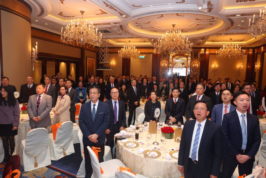 嘉賓在臺上站立唱國歌