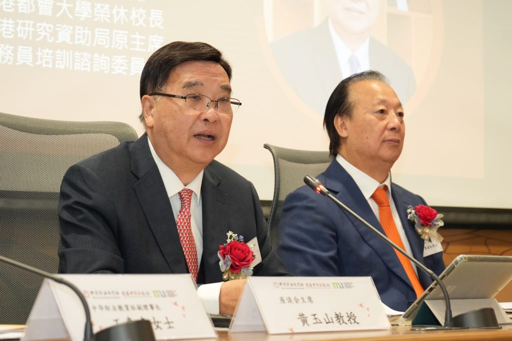 黃玉山教授緻開幕詞時表示,中華職業教育社是由黃炎培、蔡元培、梁啟超先生等48位教育界,實業界知名人士于1917年5月6日在上海創立的。至於我們香港中華職教社,則是於2024年1月12日正式成立,還不到一歲,是在廖榕就博士的倡議及大力支持下成立的。職教社緻力於推廣及提高香港職業教育,探討和交流職業教育的理論和實踐,弘揚「工匠精神」,促進職業教育在香港及粵港澳大灣區其它城市的發展,為區內創科事業、現代化工業和服務業培養人才。