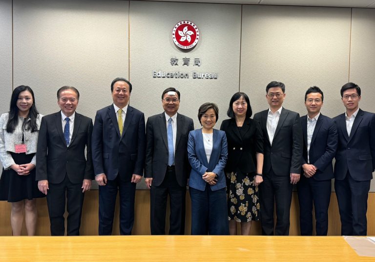 教育局代表 香港中華職教社代表 榮譽主席廖榕就博士、主席黃玉山教授、副主席黃友嘉博士及廖伊曼博士代表“香港中華職教社” 與教育局官員會面。教育局官包括蔡若…